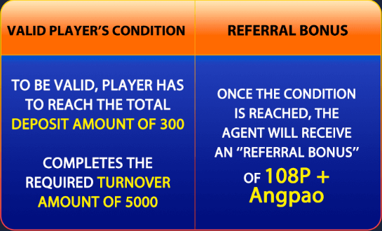 Bonus 1-After INVITING PLAYER reaches the valid membership invitation,visit “AGENT CENTER”to check your COMMISSION and go to “BONUS CENTER”to CLAIM the earned amount.